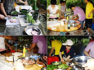 在伙伴們一同努力下,品嘗自己親手燒的可口柴火飯菜。在同事、朋友們面前一露身手。